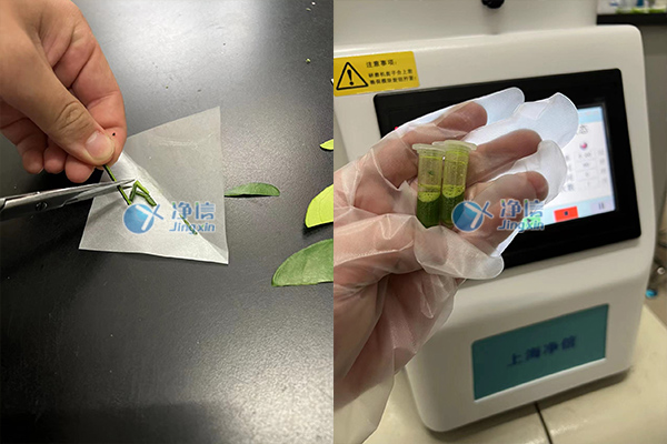 實驗器材:上海凈信全自動樣品快速研磨儀主機,柑橘葉脈1克,5M不銹鋼珠2顆,2ML研磨管