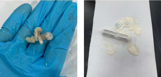 經全自動液氮冷凍研磨儀處理后的大鼠股骨,成功變為細膩粉末,無肉眼可見顆粒。后續檢測完全符合實驗要求。