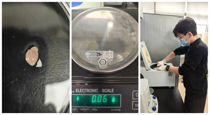 實驗開始時,我們?nèi)〕?.06mg的小鼠睪丸組織,剪碎后加入磁珠和1mL解離酶,隨后將試管放入提前預(yù)熱好的儀器中,選擇對應(yīng)組織的專用程序——按下啟動鍵,儀器就進入自動工作模式。