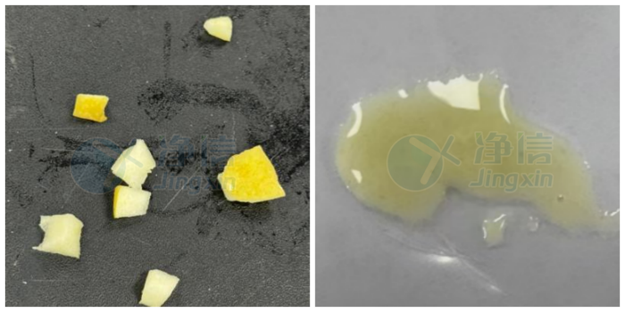 毛發(fā)樣品研磨前后對比,1分鐘內可以研磨到勻漿狀態(tài)