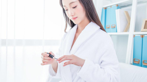 涂有色甲油時,先將指甲油握在手掌之中,用手心的溫度給甲油加熱,讓甲油的溫度接近體溫。然后沾取適量的指甲油,刷子和指甲面呈65度角,輕薄、均勻的涂上一層。等一層干透之后,再刷一層,讓顏色更加飽和。