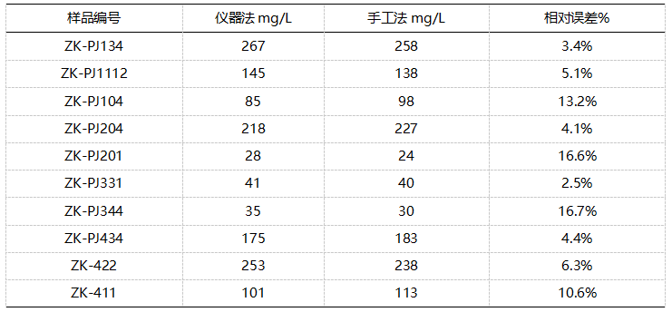 根據(jù)實驗數(shù)據(jù)結(jié)果顯示:儀器法測試結(jié)果和手工法測試結(jié)果均小于20%,JX-C7048滿足實際工作的需要。