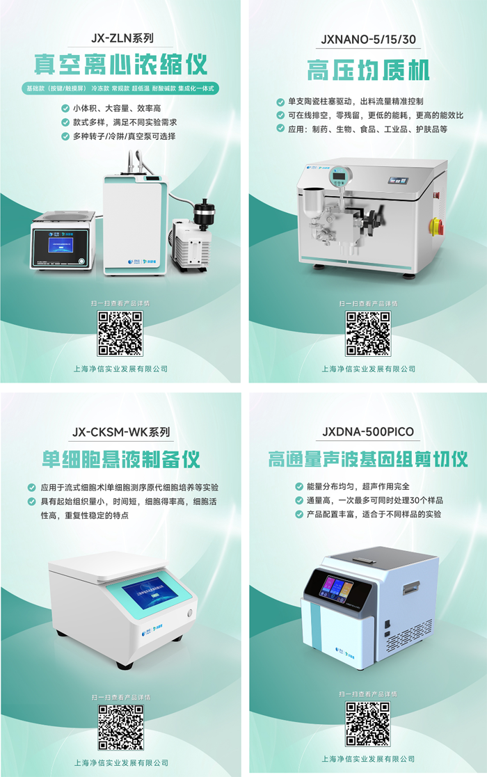 上海凈信是一家專業從事生命科學儀器、實驗室自動化設備的研發、生產、銷售為一體的國家高新技術企業。十幾年來凈信掌握自主核心技術,專注于研發、生產樣品前處理系統等生命科學儀器。