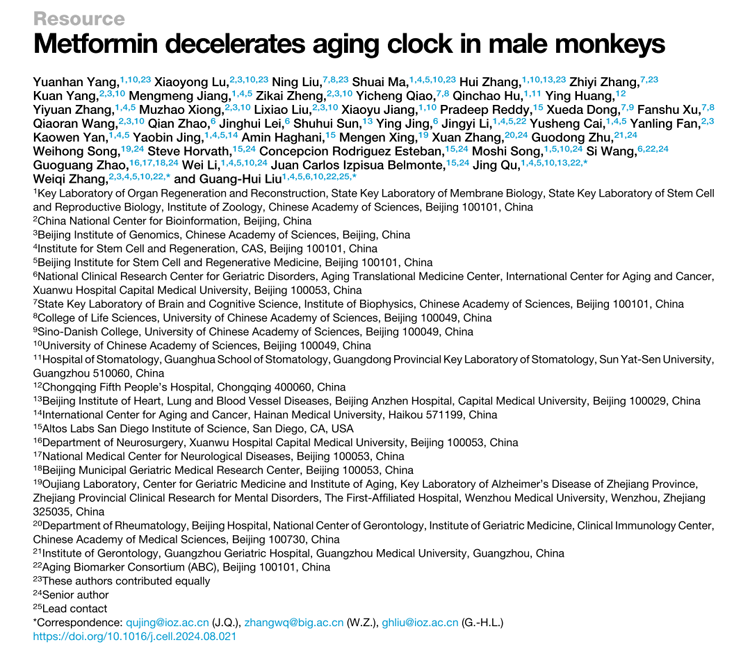 經(jīng)過多年的努力,研究團隊取得了重要發(fā)現(xiàn)。他們證實,長期服用二甲雙胍可減緩靈長類動物的衰老進程,改善認知功能,并顯著降低多種衰老相關(guān)指標。這一成果為二甲雙胍在人類抗衰老治療中的應(yīng)用提供了重要的理論依據(jù)。值得一提的是,該研究還構(gòu)建了一個基于多維度生物標志物的靈長類衰老時鐘度量體系,為未來衰老干預(yù)措施的效果評估提供了新的標準。