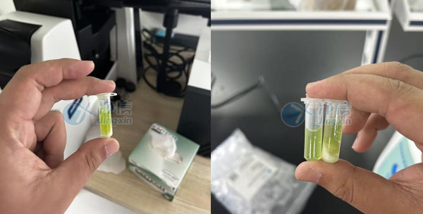 實(shí)驗(yàn)?zāi)康模?/strong>本次實(shí)驗(yàn)對象為微藻,后續(xù)會做到核酸蛋白提取。作為微生物,且此類微藻細(xì)胞壁非常厚,研磨起來也是一個(gè)難點(diǎn),要求研磨徹底,以便提高蛋白及核酸的濃度,涉及到蛋白、RNA提取還需要低溫研磨,之前用超聲破碎長時(shí)間也無法破碎,因?yàn)闃悠繁旧硎且后w,所以溫度也不能太低,否則凍住液體無法研磨,經(jīng)過比較推薦,最終客戶選擇上海凈信全自動樣品快速組織研磨儀處理樣品。