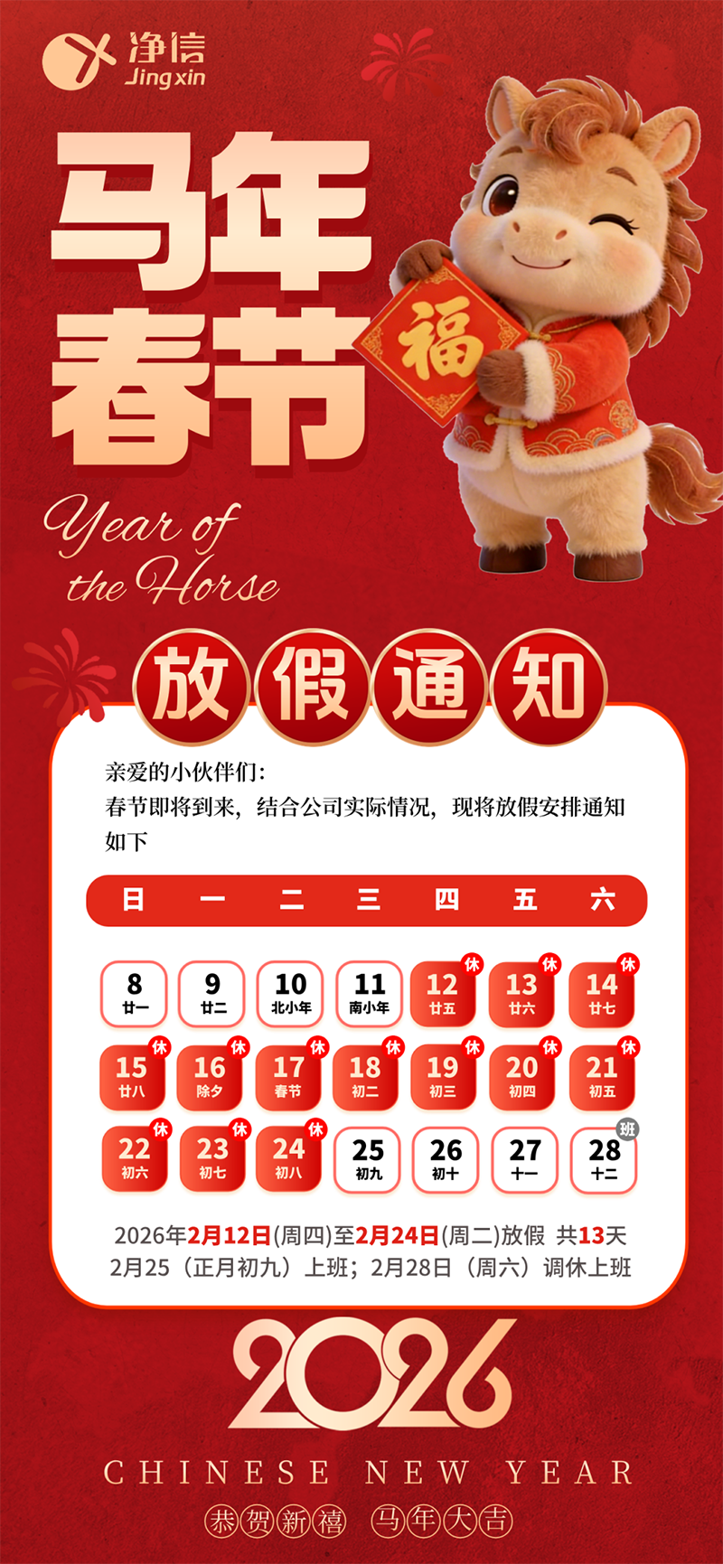 馬年春節放假通知