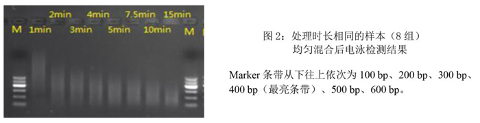 3.相同處理時(shí)長的樣本混合后,瓊脂糖凝膠電泳檢測(cè)結(jié)果: