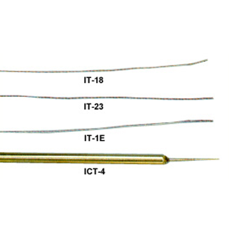IT-23-用于微尺度標(biāo)本的超快速測量。傳感器導(dǎo)線直徑只有0.009"。組織植入23ga.針(已供)。很脆弱。最高溫度150℃。時間常量0.05秒。3英尺。聚四氟乙烯涂層。獨立運行。