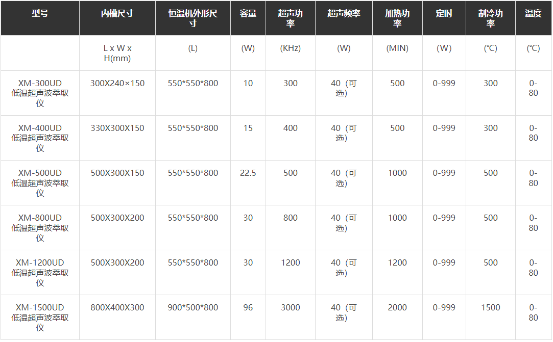 1.精密清洗;2.樣品制備的前處理:液體脫氣、混合、均質(zhì)等;3.中藥材的溶解、顆粒的分散及乳化提取;4.樣品的萃取。液體溫度恒溫控制適合于對樣品溫度要求較高的實驗。