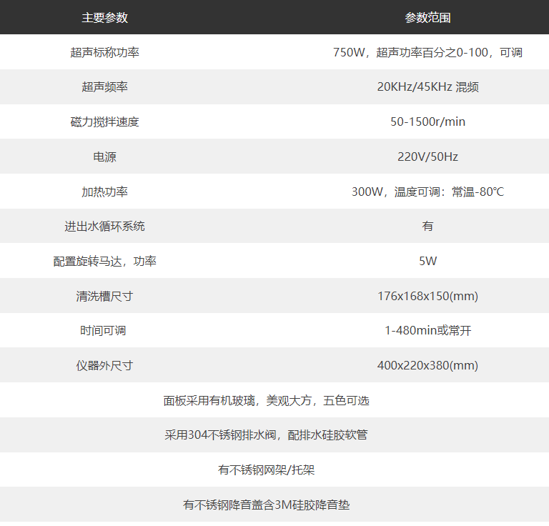 1.超聲樣品體積:搭配不同適配器, 超聲樣品體積可達 2ml -50ml以及1.5升三角瓶